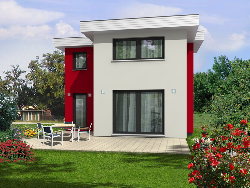 Haus Weitblick - Das Kleingartenhaus Weitblick bietet ein durchdachtes Wohnkonzept, in dem alle Räume einen Platz finden. Von außen wirkt es klassisch-modern. Der Dachvorsprung verleiht diesem Haus einen besonderen Charakter. Große Fensterflächen erlauben einen weiten Blick in den Garten.
